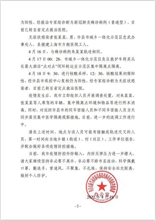 面对病例1的出现,许昌市迅速采取了严格的防疫措施。首先,对病例1的密切接触者进行了全面排查,并对他们进行了隔离观察。其次,对病例1的活动轨迹进行了追踪,对相关场所进行了消毒。此外,许昌市还加强了疫情防控宣传,提醒市民做好个人防护。